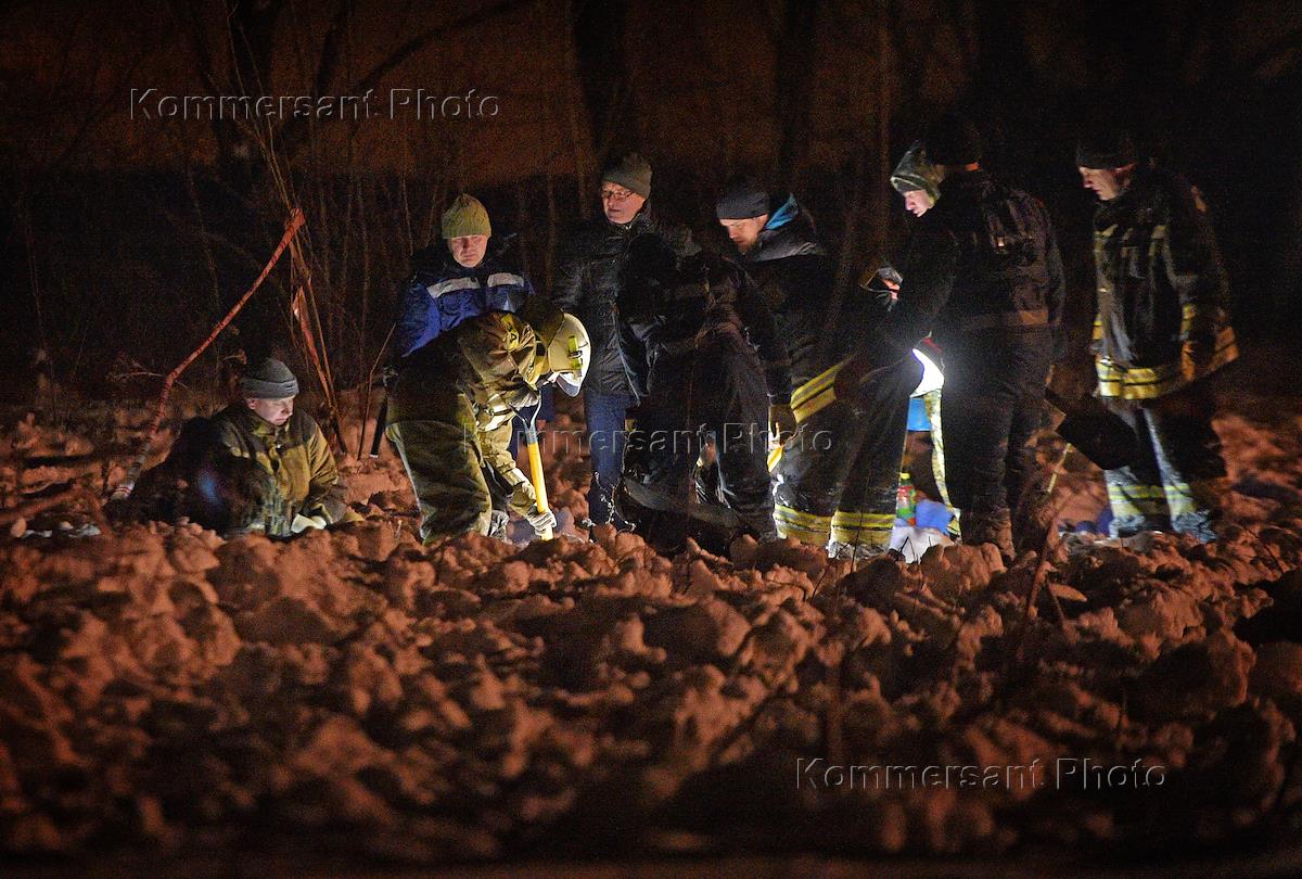 Осмотр сотрудниками МЧС России места крушения пассажирского самолета Ан-148 "Саратовских авиалиний", вылетивший из аэропорта "Домодедово" по маршруту "Москва-Орск", в деревни Степановское Раменского района.