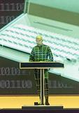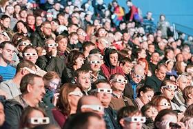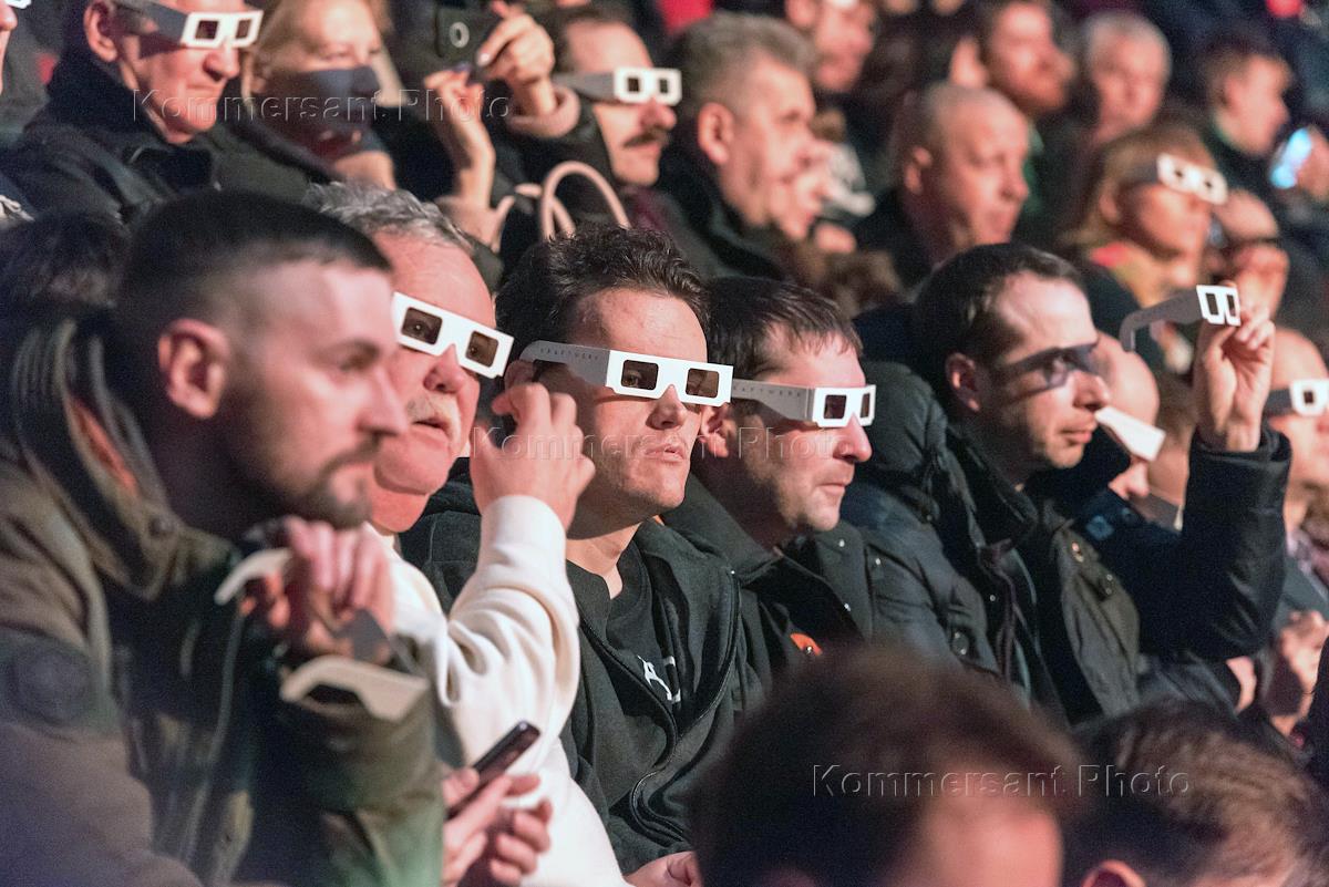Концерт немецкого музыкального коллектива из Дюссельдорфа Kraftwerk на сцене СКК "Юбилейный". Зрители во время концерта.