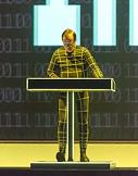 Немецкий музыкальный коллектив из Дюссельдорфа Kraftwerk во время концерта на сцене СКК "Юбилейный".