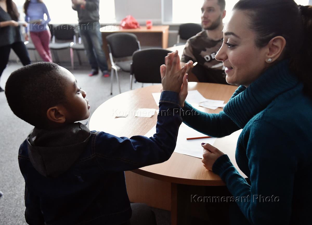 Курсы по изучению русского языка для мигрантов в центральной библиотеке имени Н.А. Некрасова. Дети на занятиях.