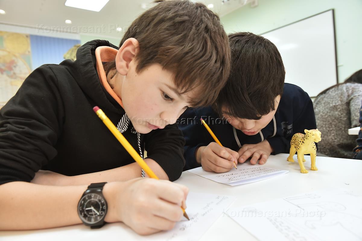 Курсы по изучению русского языка для мигрантов в центральной библиотеке имени Н.А. Некрасова. Дети на занятиях.