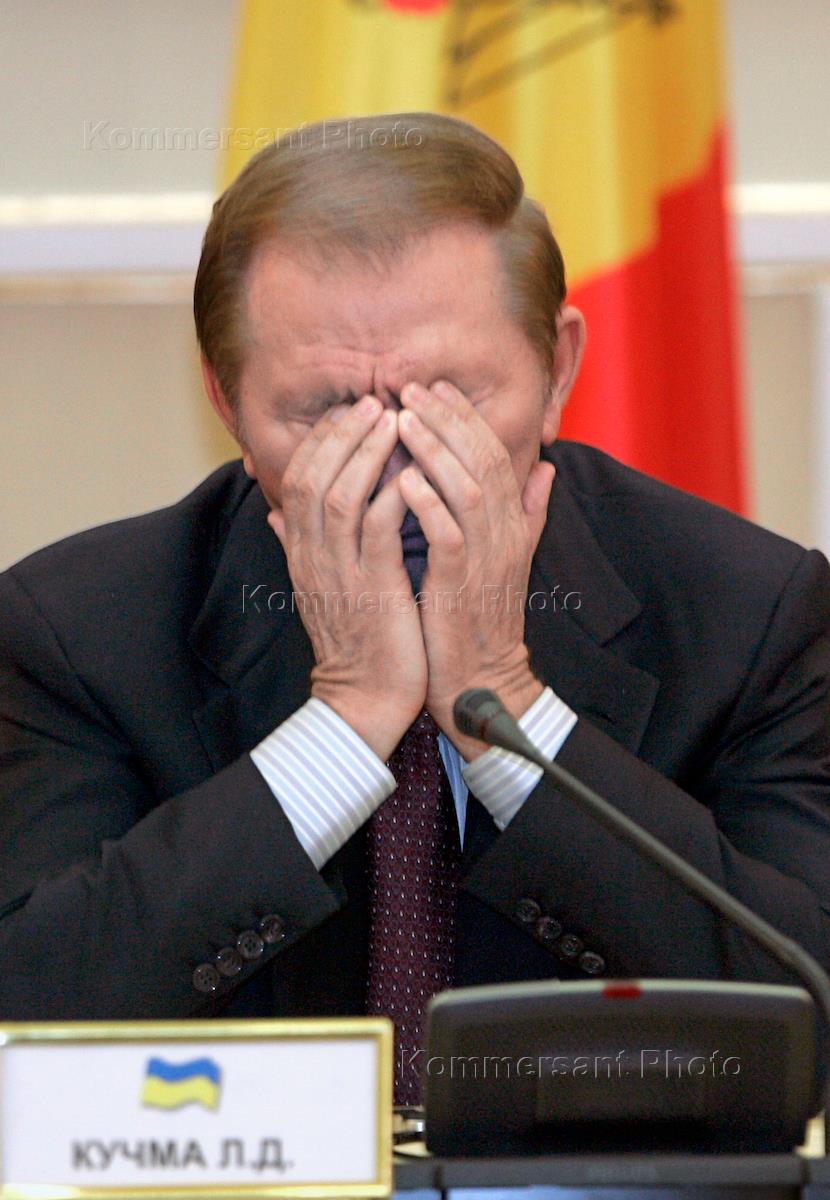 Премьер-министр Украины Виктор Янукович (слева) и президент Украины Леонид Кучма (справа) на Саммите Содружества Независимых Государств (СНГ).