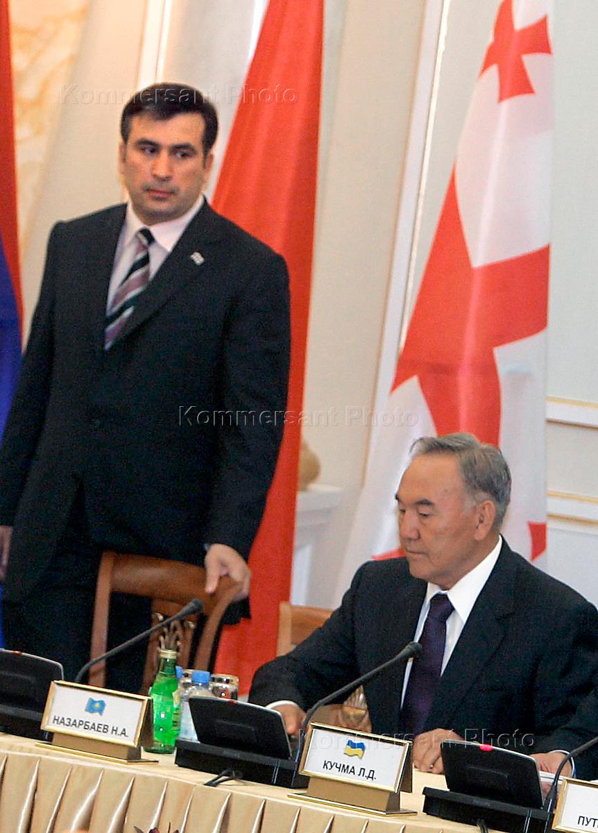 President of Georgia Mikhail Saakashvili (left) and Kazakhstan President Nursultan Nazarbayev (right) take part in the CIS leaders summit.