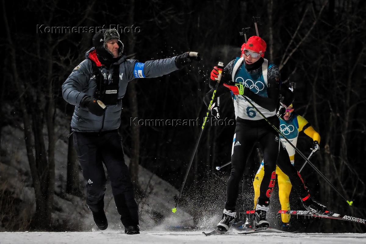XXIII Зимние Олимпийские игры в Пхенчхане. Гонка преследования на 12,5 км в соревнованиях по биатлону среди мужчин. Немецкий спортсмен Арнд Пайффер во время гонки.