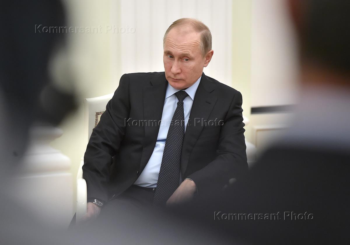 Президент России Владимир Путин во время встречи с президентом Государства Палестина Махмудом Аббасом в Кремле.