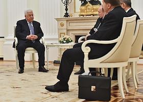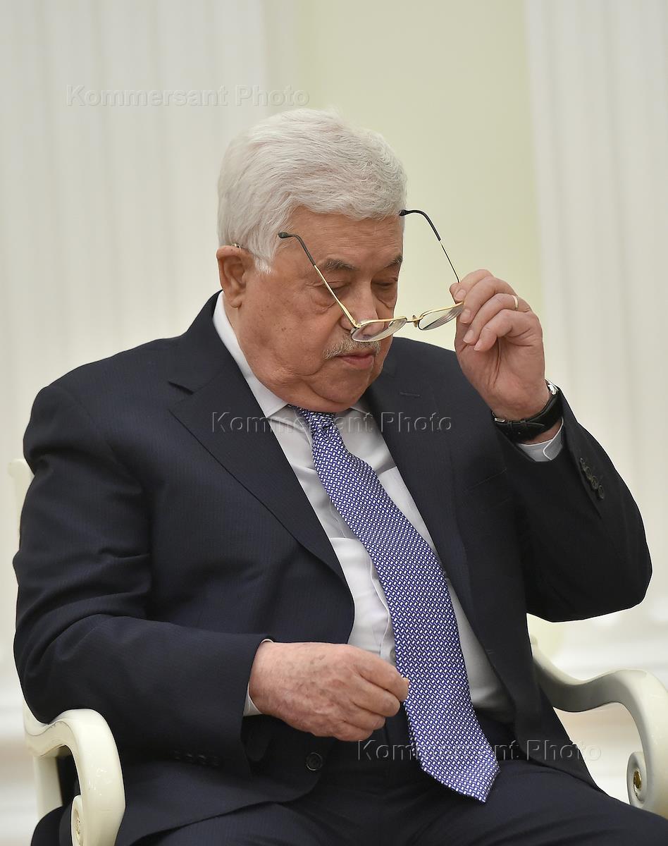 Президент Государства Палестина Махмуд Аббас во время встречи с президентом России Владимиром Путиным в Кремле.