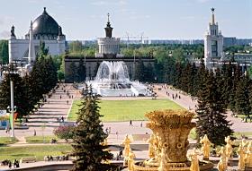 Виды Москвы. Территория ВВЦ (ВДНХ). Фонтаны "Дружба народов" и "Золотой колос".