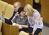 Заседание Государственной Думы (ГД) России. Заместитель председателя ГД России Ольга Тимофеева (в центре) и заместитель председателя комитета ГД по экологии и охране окружающей среды Елена Серова (вторая слева) перед началом заседания.