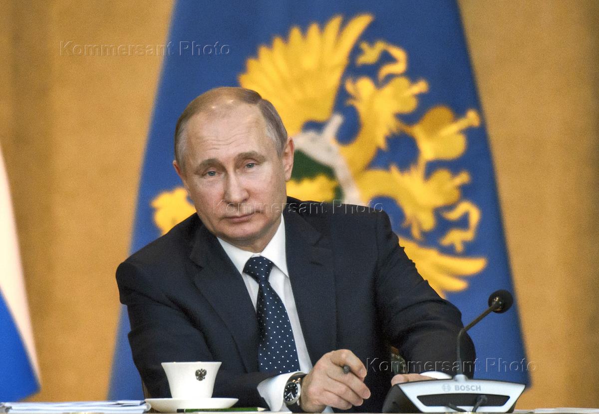 Расширенное заседание коллегии Генеральной прокуратуры России. Президент России Владимир Путин во время заседания в здании Генеральной прокуратуры России.