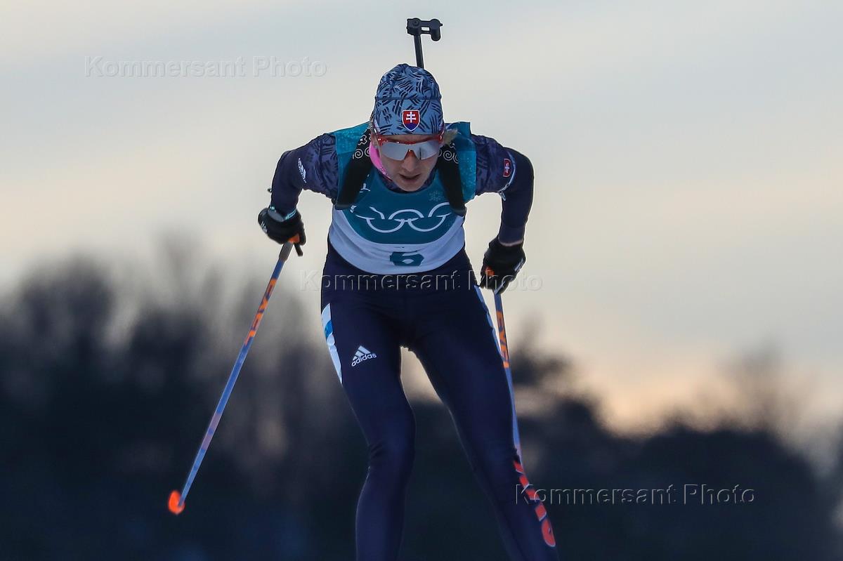 XXIII Зимние Олимпийские игры в Пхенчхане. Биатлон. Женская индивидуальная гонка. Спортсменка из Словакии Анастасия Кульмина во время гонки.