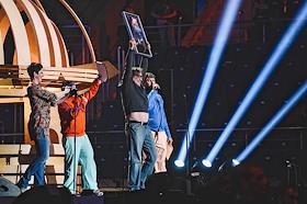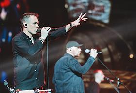 XI ежегодная национальная музыкальная премия в области рок-музыки "Чартова дюжина" на стадионе "ВТБ Ледовый дворец". Группа "Би-2" во время выступления на церемонии.