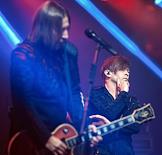 XI ежегодная национальная музыкальная премия в области рок-музыки "Чартова дюжина" на стадионе "ВТБ Ледовый дворец". Лидер группы "Машина времени" Андрей Макаревич (справа) во время выступления на церемонии.