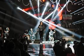 XI ежегодная национальная музыкальная премия в области рок-музыки "Чартова дюжина" на стадионе "ВТБ Ледовый дворец". Солист группы КняZz Андрей "Князь" Князев во время выступления на церемонии.