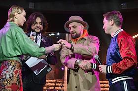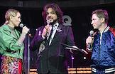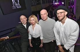 Закрытый коктейль по случаю выхода ежегодного рейтинга "100 самых стильных" по версии журнала GQ. Слева направо: издатель журнала GQ Ирина Елизарова, певцы Филипп Киркоров, Эмин и главный редактор журнала GQ Игорь Гаранин на коктейле в здании Центрального рынка.