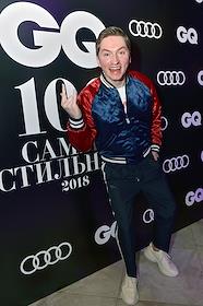 Закрытый коктейль по случаю выхода ежегодного рейтинга "100 самых стильных" по версии журнала GQ. Телеведущий Евгений Савин во время вечеринки.