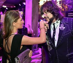 Закрытый коктейль по случаю выхода ежегодного рейтинга "100 самых стильных" по версии журнала GQ. Cолист группы "Моральный кодекс" Сергей Мазаев (слева) и певица Любовь Успенская (справа) во время вечеринки.