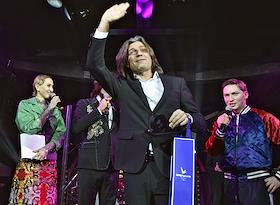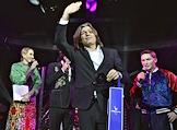 Закрытый коктейль по случаю выхода ежегодного рейтинга "100 самых стильных" по версии журнала GQ. Слева направо: издатель журнала GQ Ирина Елизарова, певцы Филипп Киркоров, Эмин и главный редактор журнала GQ Игорь Гаранин на коктейле в здании Центрального рынка.