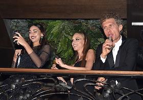 Закрытый коктейль по случаю выхода ежегодного рейтинга "100 самых стильных" по версии журнала GQ. Слева направо: модель Евгения Катава, резидент Comedy Woman Надежда Сысоева и продюсер Илья Бачурин на коктейле в здании Центрального рынка.