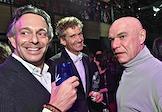 Закрытый коктейль по случаю выхода ежегодного рейтинга "100 самых стильных" по версии журнала GQ. Слева направо: издатель журнала GQ Ирина Елизарова, певец Филипп Киркоров и солист группы "Моральный кодекс" Сергей Мазаев во время вечеринки.
