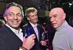 Закрытый коктейль по случаю выхода ежегодного рейтинга "100 самых стильных" по версии журнала GQ. Продюсер Илья Бачурин (в центре) и певец Сергей Мазаев (справа) на коктейле в здании Центрального рынка.
