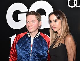 Закрытый коктейль по случаю выхода ежегодного рейтинга "100 самых стильных" по версии журнала GQ. Основатель и фронтмен группы Therr Maitz Антон Беляев (слева) с супругой Юлией (слева) на коктейле в здании Центрального рынка.
