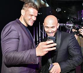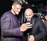 Закрытый коктейль по случаю выхода ежегодного рейтинга "100 самых стильных" по версии журнала GQ. Актер Владимир Яглыч (слева) и рэпер Джиган (Денис Устименко-Вайнштейн) (справа) на коктейле в здании Центрального рынка.