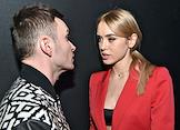 Закрытый коктейль по случаю выхода ежегодного рейтинга "100 самых стильных" по версии журнала GQ. Светский хроникер журнала Vogue (Россия) Евгений Заболотный (слева) и модель Ксения Сухинова (справа) на коктейле в здании Центрального рынка.