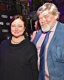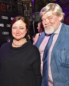 Закрытый коктейль по случаю выхода ежегодного рейтинга "100 самых стильных" по версии журнала GQ. Главный редактор "Независимой газеты" Константин Ремчуков (справа) с супругой Еленой (слева) на коктейле в здании Центрального рынка.