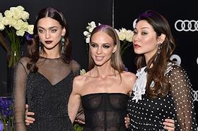 Закрытый коктейль по случаю выхода ежегодного рейтинга "100 самых стильных" по версии журнала GQ. Слева направо: модель Евгения Катава, резидент Comedy Woman Надежда Сысоева и телеведущая Марина Ким на коктейле в здании Центрального рынка.