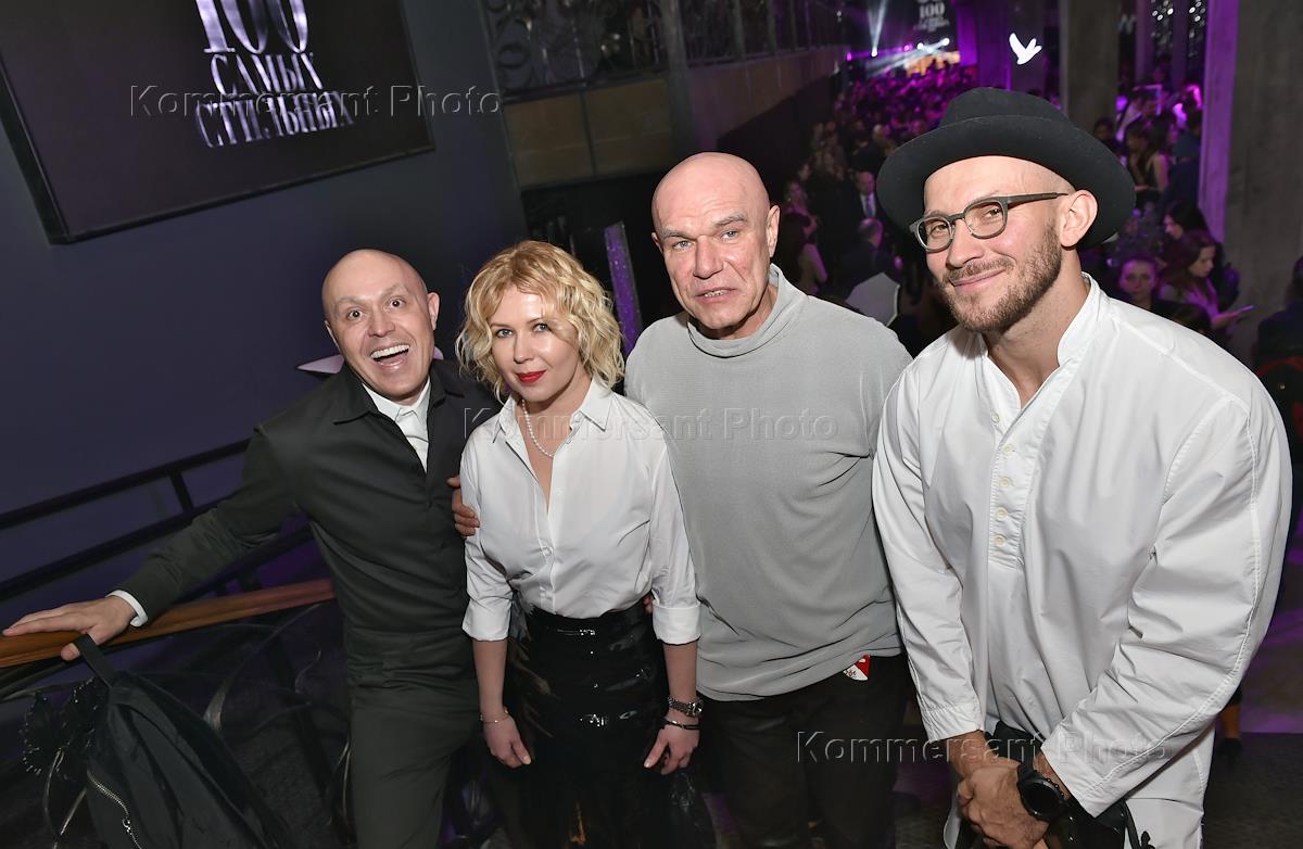Закрытый коктейль по случаю выхода ежегодного рейтинга "100 самых стильных" по версии журнала GQ. Слева направо: издатель журнала GQ Ирина Елизарова, певец Филипп Киркоров, рэп-исполнитель Василий Вакуленко (Баста) и главный редактор журнала GQ Игорь Гаранин во время вечеринки.