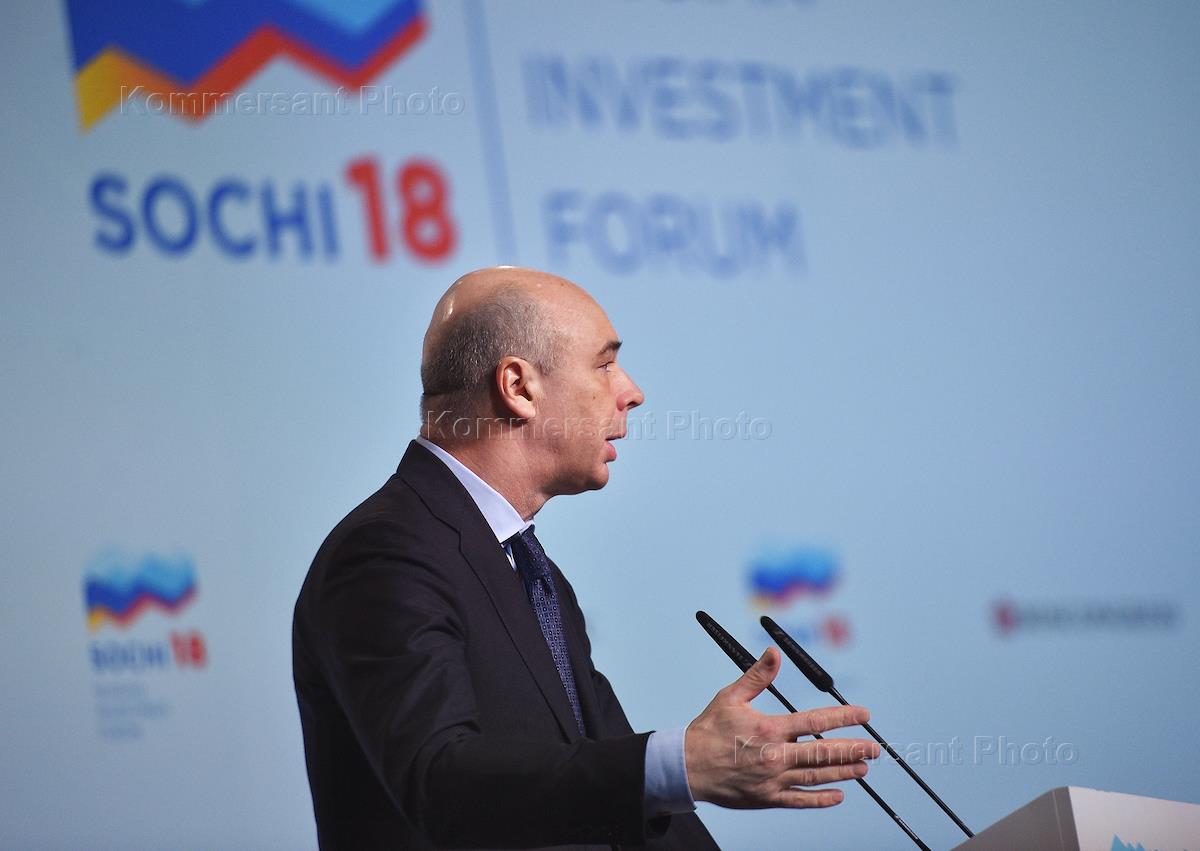 Всероссийский инвестиционный форум "Сочи-2018". Встреча председателя правительства России Дмитрия Медведева с высшими должностными лицами субъектов Российской Федерации. Министр финансов России Антон Силуанов во время встречи.
