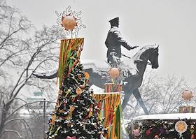 Празднование Масленицы прошло на Манежной площади. Памятник полковоцу Гергию Жукову.