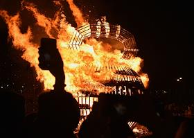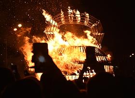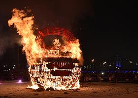 Празднование Масленицы прошло в Парке имени Горького. Сжигание гири "Тяжесть зимы" во время празднования.