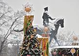Празднование Масленицы прошло на Манежной площади. Памятник полковоцу Гергию Жукову.