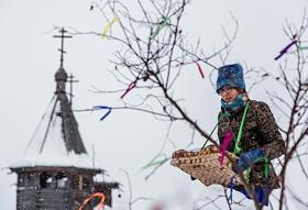 Виды Суздаля. Празднование Масленицы. Участник шутливой эстафеты
