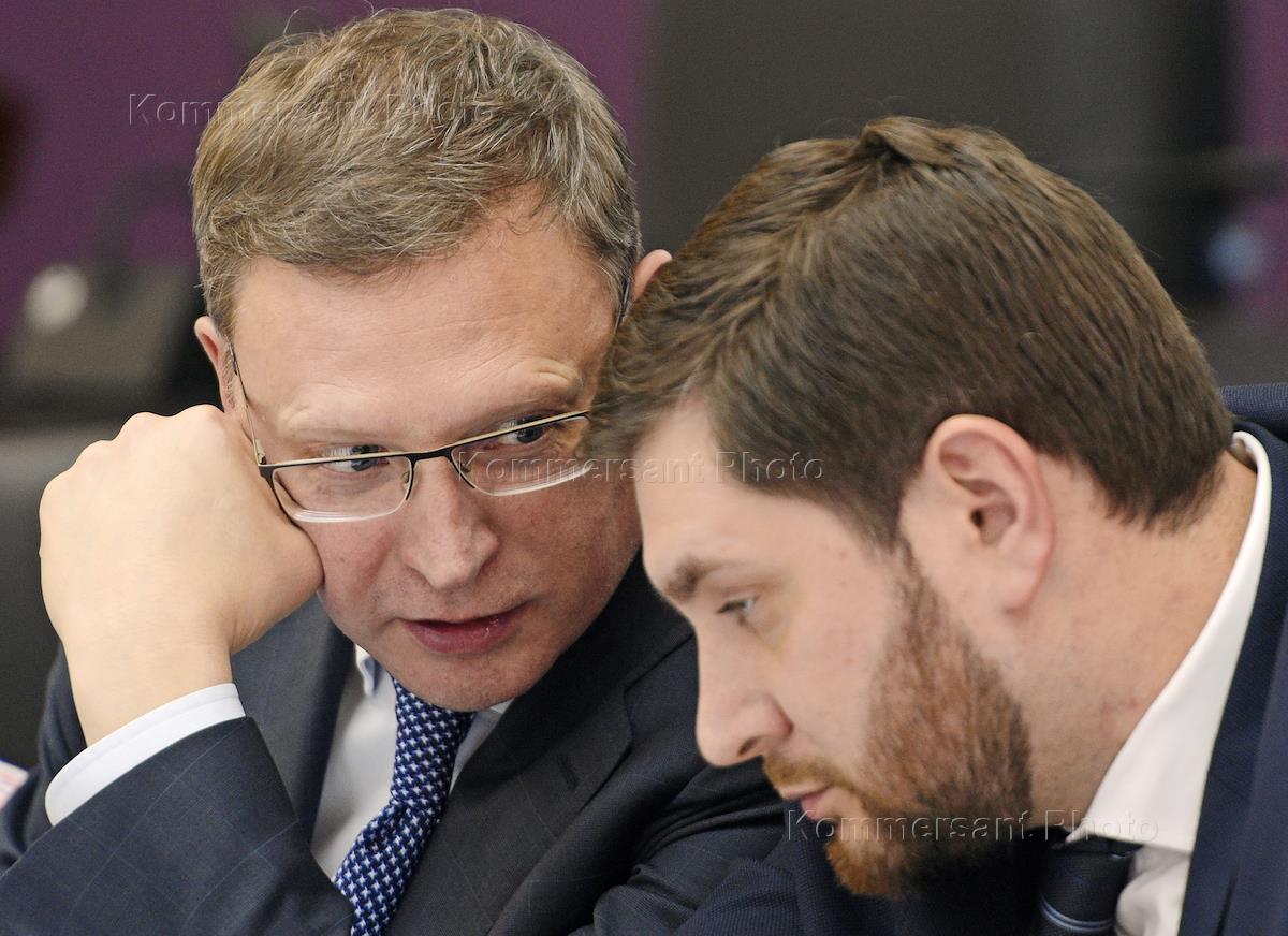 Командир омского областного штаба студенческих отрядов Алексей Потейко (слева) и временно исполняющий обязанности губернатора Омской области Александр Бурков (справа) во время расширенного заседания Штаба Омского областного студенческого отряда. Заседания прошло в Региональном центре по связям с общественностью.