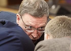 Временно исполняющий обязанности губернатора Омской области Александр Бурков во время расширенного заседания Штаба Омского областного студенческого отряда. Заседания прошло в Региональном центре по связям с общественностью.
