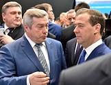 Всероссийский инвестиционный форум "Сочи-2018". Председатель правительства России Дмитрий Медведев (справа) и губернатор Ростовской области Василий Голубев (слева) во время встречи с высшими должностными лицами субъектов Российской Федерации.