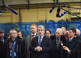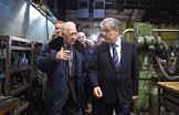 Кандидат на должность президенты России от КПРФ и народно-патриотических сил России Павел Грудинин (справа) во время встречи с трудовым коллективом Московского инструментального завода.
