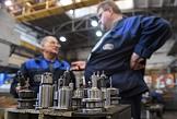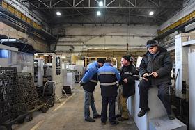 Встреча кандидат на должность президенты России от КПРФ и народно-патриотических сил России, директора ЗАО "Совхоз имени Ленина" Павла Грудинина с трудовым коллективом Московского инструментального завода (МИЗ). Рабочие МИЗ в цехе.