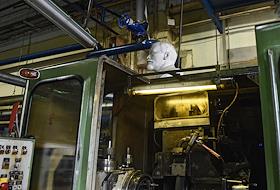 Встреча кандидат на должность президенты России от КПРФ и народно-патриотических сил России, директора ЗАО "Совхоз имени Ленина" Павла Грудинина с трудовым коллективом Московского инструментального завода (МИЗ). Цех МИЗ. Жанровая фотография. Табличка на станке "Работать с 17 до 21 часа запрещается!".
