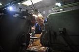 Встреча кандидат на должность президенты России от КПРФ и народно-патриотических сил России, директора ЗАО "Совхоз имени Ленина" Павла Грудинина с трудовым коллективом Московского инструментального завода (МИЗ). Рабочий МИЗ у своего рабочего места.