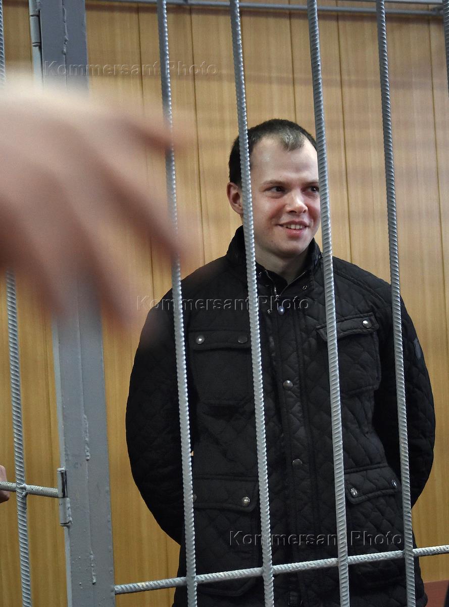 Оглашение приговора Дмитрию Борисову, обвиняемому в избиении полицейского на несанкционированной массовой акции 26 марта в центре города, в Тверском районном суде.