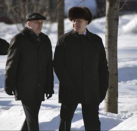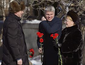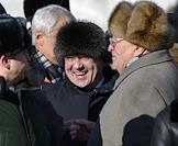Церемония возложения венка к Могиле Неизвестного солдата в День защитника Отечества. Директор Федеральной службы безопасности (ФСБ) России Александр Бортников (слева) и заместитель председателя правительства России, полномочный представитель президента России в Дальневосточном федеральном округе Юрий Трутнев (справа) во время церемонии.