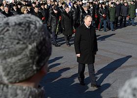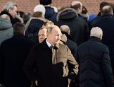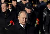 Церемония возложения венка к Могиле Неизвестного солдата в День защитника Отечества. Президент России Владимир Путин во время церемонии .