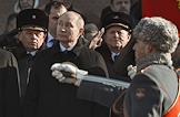 Церемония возложения венка к Могиле Неизвестного солдата в День защитника Отечества. Президент России Владимир Путин (второй справа) и председатель правительства России Дмитрий Медведев (второй слева) во время церемонии.