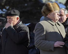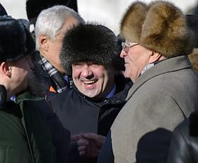 Церемония возложения венка к Могиле Неизвестного солдата в День защитника Отечества. Лидер КПРФ, член комитета ГД России по делам Содружества Независимых Государств, евразийской интеграции и связям с соотечественниками Геннадий Зюгаков (слева) и лидер Либерально-демократической партии России (ЛДПР) Владимир Жириновский (справа) во время церемонии.