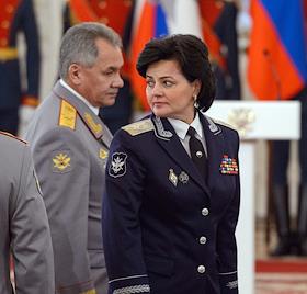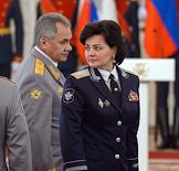 Церемония вручения государственных наград в День защитника Отечества в Кремле. Министр обороны России Сергей Шойгу (слева) и заместитель министра обороны России Татьяна Шевцова (справа) во время церемонии.