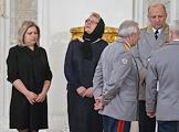 Церемония вручения государственных наград в День защитника Отечества в Кремле. Вдова героя России, военного летчика Романа Филиппова, погибшего в Сирии, Ольга (в центре) и родители Романа Филиппова Елена (слева) и Николай (справа) во время церемонии.