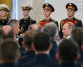 Церемония вручения государственных наград в День защитника Отечества в Кремле. Воспитанники Суворовского военного училища во время церемонии.